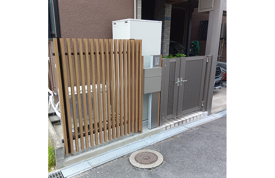 隣家の事情で、エコキュートを玄関の方に移設しなければならなくなった。それに伴い、今までのフェンスや門扉が使用できなくなった。